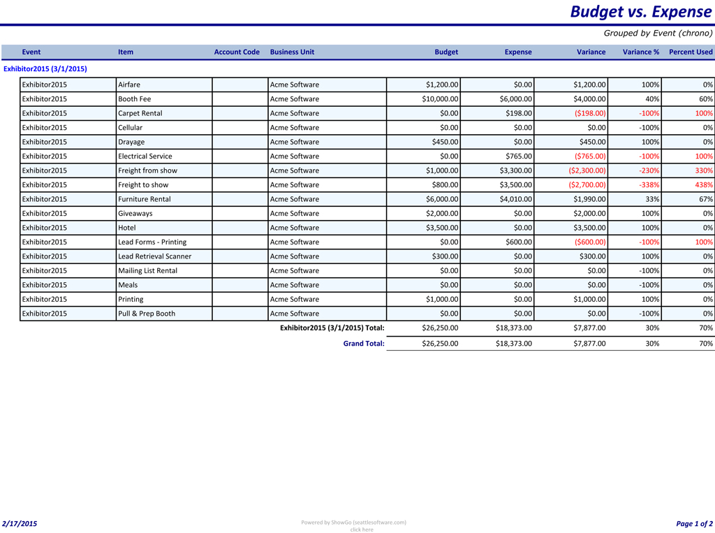Financials > Budget vs Expense by Event